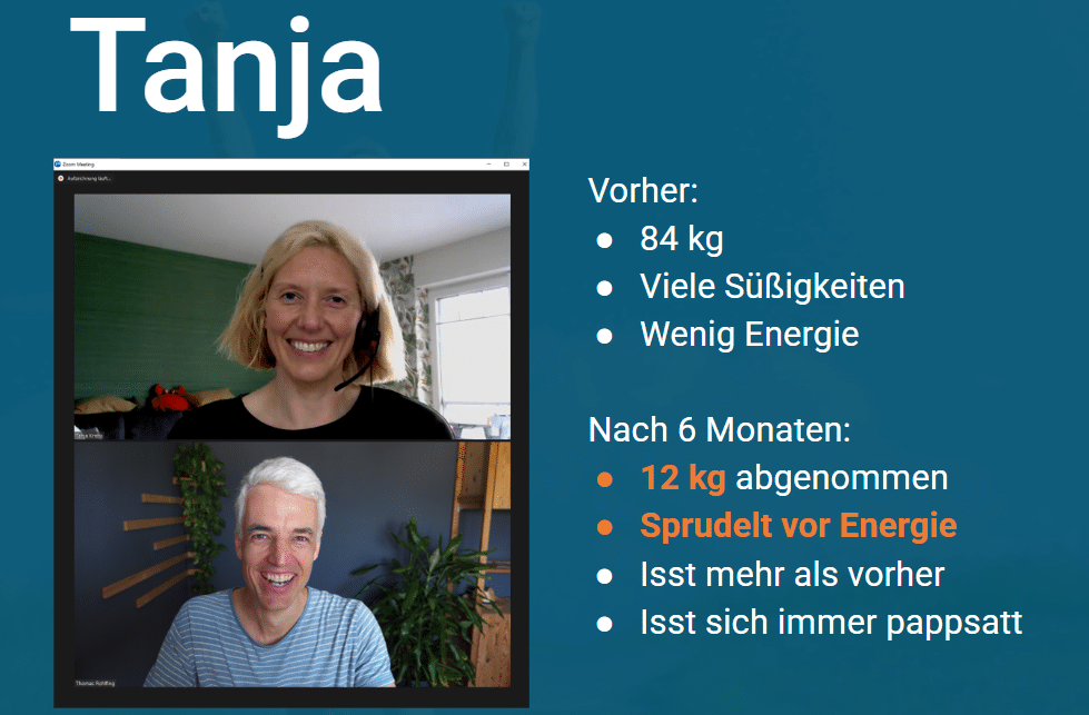 Thomas hat enorm viel zu diesem Ergebnis beigetragen. Seitdem kann ich mich endlich wieder satt essen, ohne mich bei den vollwertigen Kohlenhydraten einzuschränken.